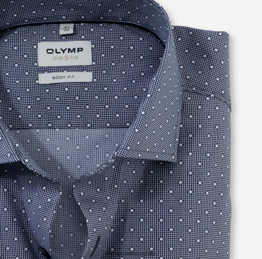 un estilo de vida moderno aporta un aspecto creativo a la vida empresarial. Esta camiseta con ajuste corporal 24/7 de nivel cinco olímpico viene en una combinación de colores coordinados, tono sobre tono, de formas circulares y microcuadros. Las probadas ventajas de uso y cuidado del cómodo tejido elástico de fibras de algodón y elastolefina le permitirán ahorrar tiempo. Gracias a su textura dinámica, garantizan un ajuste atractivo y que mantiene la forma y una comodidad agradable para la piel. rematado con un seguro collar royal kent, que sigue luciendo profesional incluso cuando se usa sin corbata.