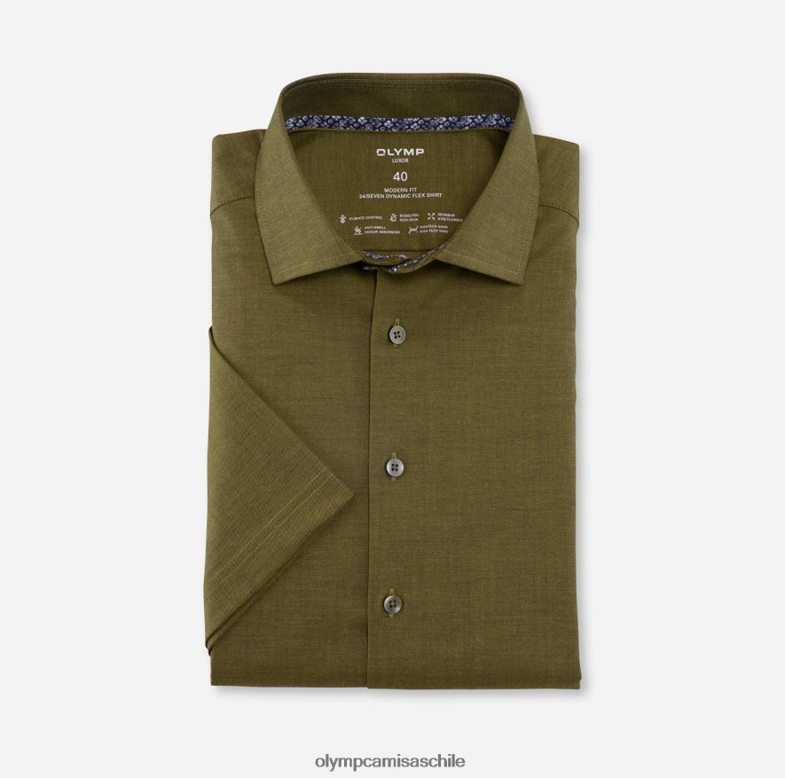 La alta tecnología y la moda se fusionan con las camisas business Dynamic-Flex de Olymp Luxor 24/7. Los hilos altamente funcionales en una fina estructura diagonal de sarga marcan la pauta en materia de control climático. Las probadas propiedades transpirables, de secado rápido, elásticas, fáciles de planchar e inhibidoras de olores de las fibras de algodón, elastano y poliéster se han perfeccionado de forma innovadora con atributos que regulan la humedad y la temperatura. El cosmopolita cuello Kent global completa armoniosamente el corte deportivo y ligeramente entallado. mangas cortas veraniegas, verde oscuro mágico.
