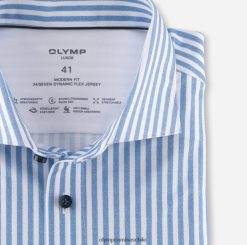 Rayas clásicas de bengala, colores poco convencionales, aspecto impresionante: la innovadora línea olymp 24/seven luxor modern fit destaca no sólo por su corte ceñido, su libertad de movimiento resistente a las arrugas y sus características de alta gama. El tejido de fibra de algodón y elastano es transpirable, absorbe los olores, elástico, de secado rápido y fácil de planchar. perfecto cuando viaja y en casa durante reuniones de alta energía. equipado con un elegante cuello kent.