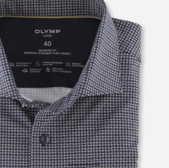 Los diseños minimalistas, elegantes y sutiles crean un efecto discretamente convincente, mientras que la atractiva silueta que realza la figura llama inmediatamente la atención. La línea Olymp Luxor 24/7 Modern Fit en jersey elástico Dynamic Flex impresiona por su transpirabilidad y resistencia a los olores, así como por sus propiedades de fácil planchado y secado rápido. La mezcla de fibras tejidas de algodón y elastano mantiene su forma y es agradable al tacto incluso en las condiciones más exigentes. con el clásico kent.
