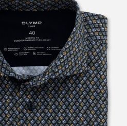 Las impresiones digitales con gran nitidez complementan la moda empresarial actual y aportan individualidad y creatividad a la vida cotidiana de la oficina con olymp. Esta camiseta Olymp Luxor Modern Fit 24/7 Dynamic Flex Jersey se caracteriza por su tejido suave, extraelástico y transpirable. Absorbe el olor corporal, se seca rápidamente y es fácil de planchar. Corte entallado, visualmente atractivo y acabado con un clásico cuello Kent: la camisa profesional de todos los tiempos es cómoda y elegante: estilo y declaración para el hombre de hoy.