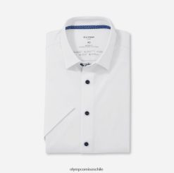 elegante y moderno. La camisa de negocios Olymp Luxor Modern Fit Dynamic Flex Jersey garantiza una apariencia adecuada y de alta calidad con su ajuste atractivo y ceñido al cuerpo, su elegante nuevo cuello Kent y su textura mate y brillante. Al mismo tiempo, es tan cómoda de llevar como una camiseta, especialmente en la versión veraniega con media manga. El rendimiento de la mezcla de fibras de algodón y fibras dinámicas de elastano, respetuosa con la piel, impresiona: es transpirable, absorbe los olores, es elástica, se seca rápidamente y es fácil de planchar. en blanco brillante con un estilo atlético y sin bolsillo en el pecho.