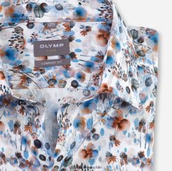 ¡que venga la primavera! Con esta camisa Olymp Luxor Comfort Fit con detalles en naranja, puedes agregar un toque creativo a una chaqueta clásica y seria. Flower Power en una silueta masculina de corte recto y una resolución de impresión nítida. La popelina de puro algodón garantiza un confort agradable para la piel, es ligera, suave, transpirable y de fácil cuidado. rematado con un nuevo y versátil cuello Kent. sin bolsillo en el pecho.