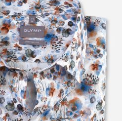 ¡que venga la primavera! Con esta camisa Olymp Luxor Comfort Fit con detalles en naranja, puedes agregar un toque creativo a una chaqueta clásica y seria. Flower Power en una silueta masculina de corte recto y una resolución de impresión nítida. La popelina de puro algodón garantiza un confort agradable para la piel, es ligera, suave, transpirable y de fácil cuidado. La versión vaporosa de manga corta se completa con un nuevo y versátil cuello Kent. sin bolsillo en el pecho.