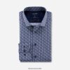 Esta camisa de negocios de corte moderno de Olymp Luxor reinterpreta el tradicional horario de nueve a cinco: con fuertes contrastes, sofisticados degradados de color y una gran repetición. Impresionante con chaqueta, informal para eventos después del trabajo, el tejido de puro algodón con hilo fino y refrescante llama la atención en ambos casos. la fibra ofrece una sensación agradable para la piel y un manejo fácil de cuidar y que ahorra tiempo. El cuello abotonado subraya el aspecto deportivo y combina con la silueta entallada. Idealmente usado sin corbata. sin bolsillo en el pecho.
