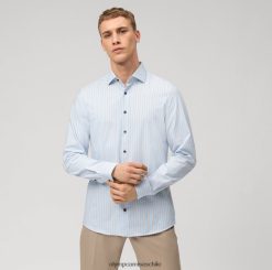 Anhelando la libertad y la autorrealización, el corte deportivo de esta camisa elegante casual 24/7 del nivel cinco del Olymp encarna las transiciones fluidas entre la moda profesional y la moda informal sofisticada con sofisticadas rayas de diferentes anchos y una exquisita combinación de colores en gris topo, azul y blanco. Con el clásico cuello Kent, tejido con una innovadora sarga climática de algodón, poliéster y elastano, esta camisa no sólo es moderna, sino también respetuosa con la piel y multifuncional: es transpirable, absorbe los olores, elástica, fácil de planchar y protege de la humedad. regulador de temperatura.