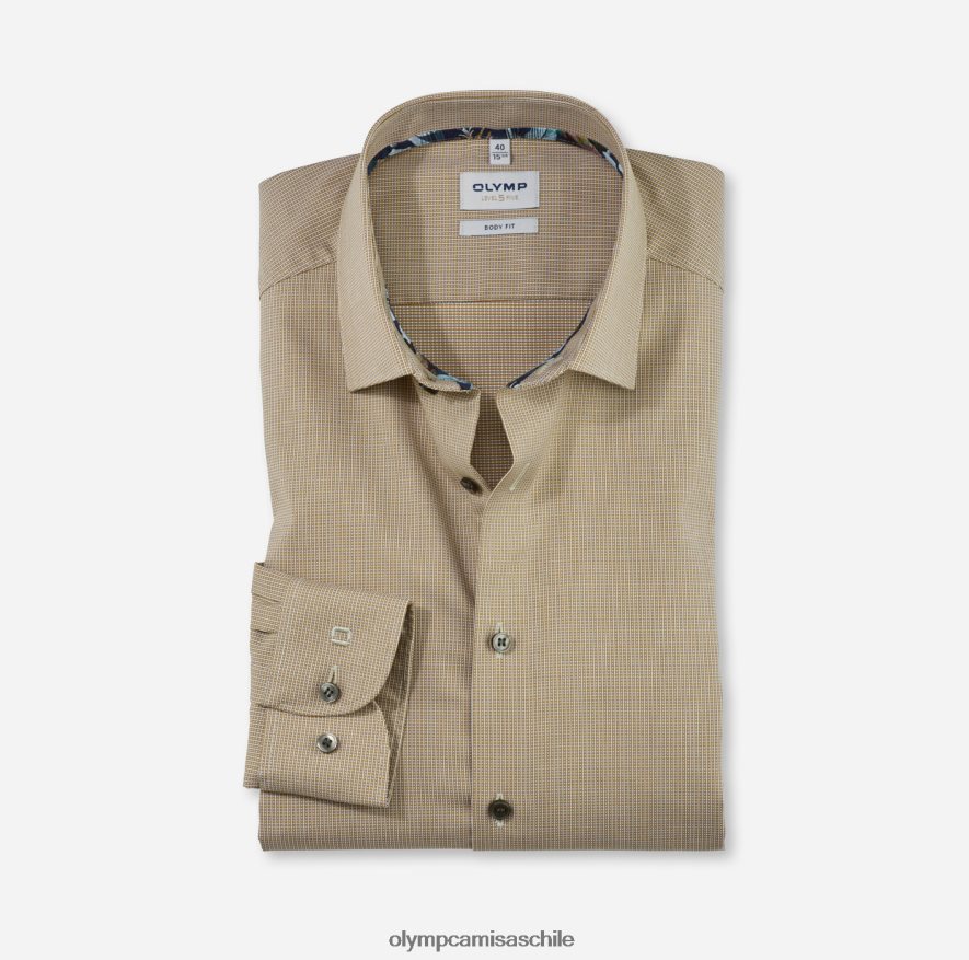 Un diseño elegante de color liso, un tejido de textura fina y una silueta ajustada al cuerpo con un corte masculino: presentamos esta camisa Olymp Level Five, un clásico empresarial fiable en un exquisito tono latón. Está creado con una tela de algodón elástica, ligera, acogedora y cómoda, confeccionada según el estándar Green Choice de alta calidad y es perfecta para la colección de primavera. No importa si lo llevas con una corbata de color liso, una pajarita estampada o un cuello abierto: ¡este elegante todoterreno es la elección perfecta tanto para el horario de oficina como para después del trabajo! acentuado por un elegante cuello Kent de Nueva York. simplemente se ve bien.