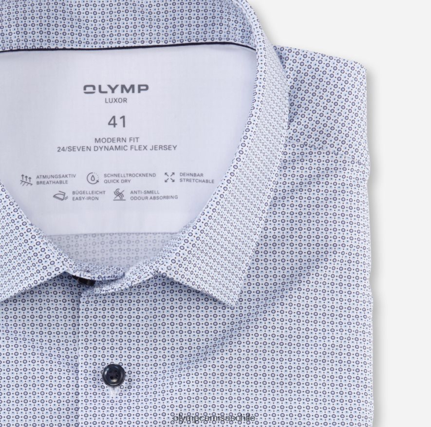 Microdiseño visualmente atractivo y tacto suave: las camisas de negocios Olymp Luxor en un jersey dinámico hecho de fibras de algodón y elastano garantizan un aspecto de negocios elegante pero informal. El tejido elegantemente brillante destaca por sus ventajas funcionales, además de por su forma ajustada. Es transpirable, de secado rápido, elástico y fácil de planchar. Nuevo e innovador cuello Kent, color azul característico, sin bolsillo en el pecho.