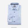 un atractivo efecto cambiante y una fina textura antideslizante en color marino intenso aportan un soplo de aire fresco y elegancia deportiva a la oficina. El algodón puro utilizado en esta camisa veraniega Olymp Luxor Comfort Fit impresiona con las ventajas de uso y cuidado probadas de una camisa de negocios adecuada. El nuevo y versátil cuello Kent combina perfectamente con la silueta masculina de corte recto y te permite combinarlo con casi cualquier nudo de corbata.