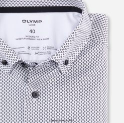 Esta camiseta Olymp Luxor garantiza total libertad de movimiento con una funcionalidad agradable para la piel. Los innovadores hilos de control climático complementan el tejido dinámico y flexible con propiedades adicionales de regulación de la humedad y la temperatura. El diseño con microimpresión en negro actúa como una ruptura elegante con el típico estilo empresarial. rematado con un cuello Kent global cosmopolita y un cuello interior en contraste.