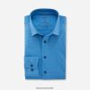 atlético, estético, atractivo. La camiseta 24/7 Dynamic Flex inspira en el segmento empresarial de ajuste moderno de Olymp Luxor con un corte ceñido al cuerpo, máxima libertad de movimiento y una combinación de colores única, moderna e irregular. Con mangas cortas, es tan cómoda como una camiseta y tan elegante como una camisa. Las propiedades transpirables, de secado rápido, elásticas, fáciles de planchar y antiolores de su mezcla elástica de algodón y elastano hacen de esta innovadora camisa de negocios en azul agua brillante un todoterreno imbatible. acabado con un elegante cuello new kent, botones contrastantes y sin bolsillo en el pecho.