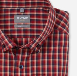 Esta camisa Olymp Luxor impresiona con su elegante cuadro rojo sobre un tejido de popelina de algodón agradablemente suave. El tejido ligero y refrescante es transpirable, agradable para la piel y fácil de planchar y cuidar. una camisa de negocios de corte recto que es a la vez elegante y fácil de combinar. rematado con un elegante cuello abotonado.