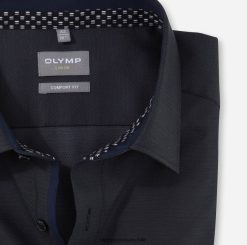 Como elegante todoterreno, esta camisa Olymp Luxor presenta un tejido fino con textura de brillo mate y una gran selección de colores sólidos. El elocuente grafito, un corte recto y un nuevo y versátil cuello Kent se combinan para crear el look de negocios perfecto. el ribete interior en contraste actúa como un eficaz acento de estilo. transpirable y agradable para la piel, fácil de cuidar y planchar.
