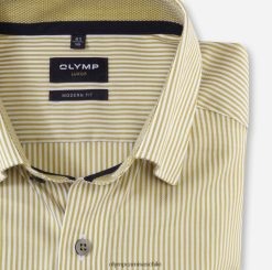 ¡Los diseños de rayas son imprescindibles en cualquier guardarropa de negocios! El tejido fino y antideslizante en color lima fresco y blanco confiere a esta camisa su especial elegancia hecha a medida. Olymp Luxor Modern Fit: confeccionado en puro algodón con detalles de moda, como un distinguido cuello con botones y ribetes en contraste. con un corte entallado y ligeramente entallado. olymp luxor: estilo y declaración en los negocios.