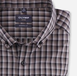 Esta camisa Olymp Luxor impresiona con sus cuadros finamente afinados en color topo sobre un tejido de popelina de algodón agradablemente suave. El tejido ligero y refrescante es transpirable, agradable para la piel y fácil de planchar y cuidar. una camisa de negocios ajustada que destaca por lo fácil que es combinarla con el resto de un conjunto. rematado con un elegante cuello abotonado.