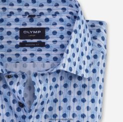 son unas vacaciones junto al mar que ya te tientan después del invierno: la sofisticada combinación de colores azul, marino y blanco, así como el patrón creativo con degradados de color nítidos convencen por su ligereza visual y la extraordinaria suavidad de los finos y frescos hilos de algodón. El corte ligeramente entallado y entallado y el cosmopolita cuello Kent global subrayan el estilo empresarial más informal de la generación más joven. Seria e individual, esta camisa de corte moderno Olymp Luxor establece el punto de referencia para una apariencia elegante. veraniego, aireado, con mangas cortas y sin bolsillo en el pecho.