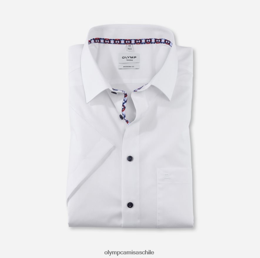 Esta clásica camisa de negocios de corte moderno de Olymp Tendenz de color sólido es genial en el verdadero sentido de la palabra. El hilo de algodón es excepcionalmente suave, lo que lo hace particularmente impresionante en primavera y verano gracias a su comodidad para la piel y al ahorro de tiempo que le permitirá ahorrar gracias a sus propiedades de fácil cuidado y fácil planchado. El corte atlético y ajustado y el elegante nuevo cuello Kent completan el diseño ágil, mientras que el ribete estampado en contraste en el cuello seguramente llamará la atención. relación calidad-precio excepcional, blanco brillante, con un corte aireado y veraniego de manga corta.